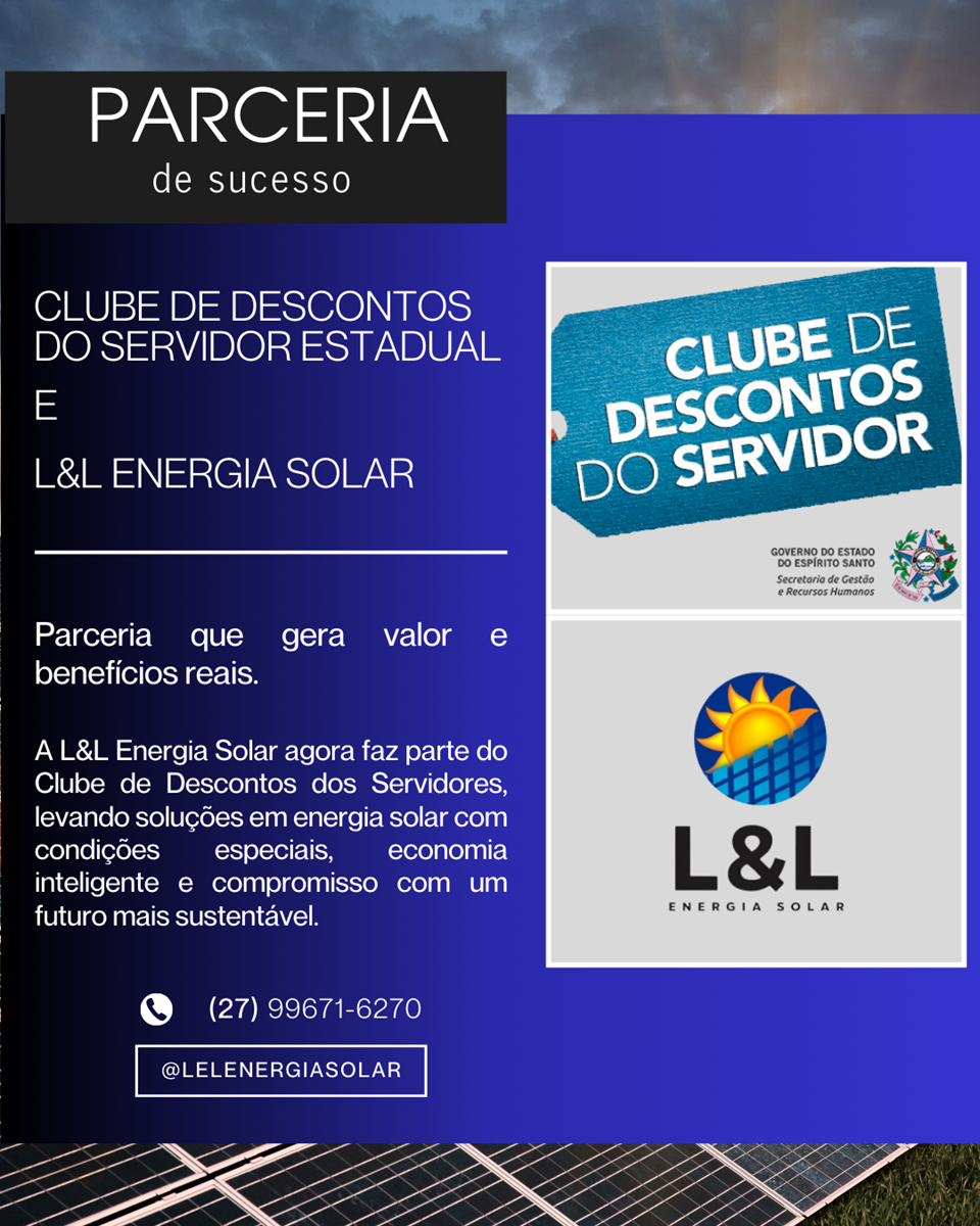 A L&L Energia Solar agora faz parte do Clube de Descontos do Servidor Estadual, oferecendo aos servidores condições especiais em energia solar, com soluções inteligentes, sustentáveis e financeiramente vantajosas.